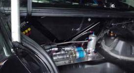 丁寧な作業をしてあり僕は「このボディーは何処で造ったの?」と聞いてしまった。香港のボディー専門店で造ったと聞いた。ドア等もカーボン仕上げでサスペンションは日本製でブレーキ関係も355+アルコン6で武装してあった。