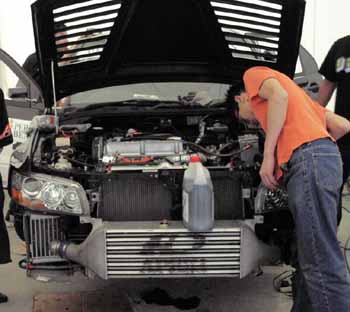 前回とエンジンも変わったらしく2300CCに変更されヘッドも変わったそうだ。2.3Lkitは国内産では無い、もしかすると国内産と基本的に同じかもしれない。 T/Mもドグギヤに変わっていた。今回はPIのロガー解析もするらしく担当も来るらしいと聞いていた。