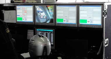 ピット内で見学していた。テレメトリィーシステムなのかリアルタイムで車内の様子やエンジン等のコンディションがモニターに映し出されていた。
