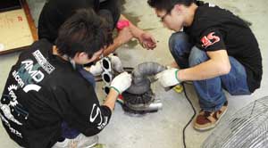即ピットで修理開始、しかしレースではタービンG/Kが吹っ飛ぶ、配管抜けも・・ホースとバンドのグレードアップをお願いした。取り付けも目視して注意を払っていたのだが・・原因は後に判る・・