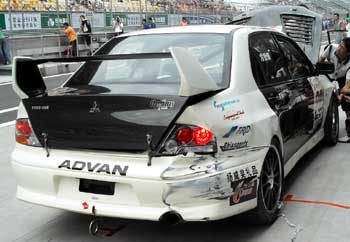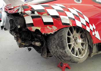 360のクラッシュ・・・このマシンは修理不能でリタイアだった。悲しそうな顔をしながら細部の破損状態をチェックした。