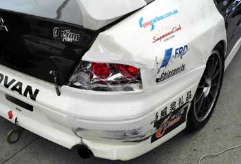リヤをクラッシュ・・・その後の応急板金は素晴らしく壺を得たモノだった。