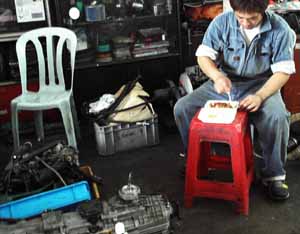 さて・・いよいよ作業開始だ。このマシンは主にDRAGレースで使用する。セパンで行われるレースで最近では日本のチューニングSHOPのデモカーを走らせているようだ。日本では走らせる意味がないのかな?
