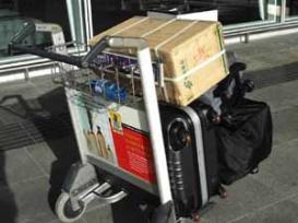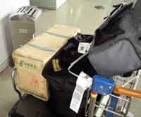 早朝は空港行きバスに乗った。荷物は1人で移動できないくらいある。