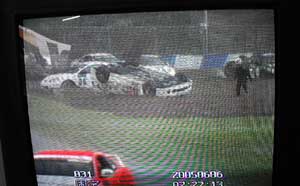 グラベルに足をすくわれ横転するマシンが多い。次から次え同じ所にコースアウトする。避けるものだから余計に横転する。