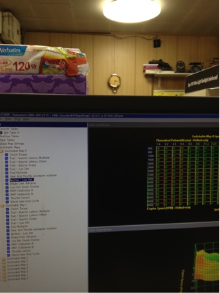 MAP変更サービスも受け付け出来るように考え中で御座います。設定項目はアクセル開度、水温制御、各種レブリミッター、クラッチ締結油圧設定、基本マップ内にて8通の設定、高負荷時の目標空燃比、、5速後半から6速で効きます!、左右エアフロMAP、、大口径エアフロ対応、、ボチボチ公開していきますね。